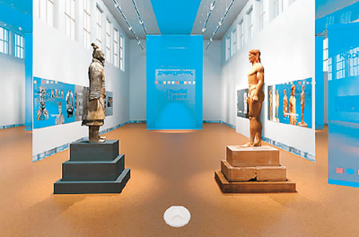 在最終的展覽場景中,觀眾可以同時看到中國的兵馬俑與希臘的克羅伊索斯青年雕像面對面佇立,在希臘國家考古博物館第13號展廳內(nèi)進(jìn)行著一場“仿佛真實(shí)存在的”虛擬場面。 |