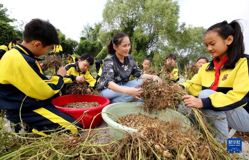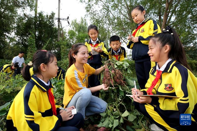 當(dāng)日,山東省棗莊市市中區(qū)中興小學(xué)老師在勞動實踐基地為學(xué)生上“農(nóng)耕課”。學(xué)生們在學(xué)習(xí)農(nóng)耕知識的同時,體驗農(nóng)耕樂趣,感受農(nóng)耕文化的魅力。近年來,中興小學(xué)在校園里開辟勞動實踐基地,把鄉(xiāng)土農(nóng)耕文化、農(nóng)作物種植技能等融入到教學(xué)之中,為綜合實踐課提供“活教材”。新華社發(fā)(孫中喆 攝)