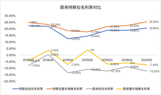 第三個要點就來談?wù)劽拾桑?季度綜合毛利率為負(fù)12.2%,相比之下,2019年第四季度為-8.9%,2019年同期為-13.4%。在解釋毛利率下滑的原因時,蔚來表示主要是因為出售的 ES6比例較高,但是ES6售價比ES8低。讓人沒想到是在這種情況下,李斌居然還在電話會中預(yù)計2季度毛利率達(dá)3%。