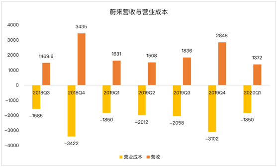 蔚來(NIO)于5月28日盤前發(fā)布2020年Q1財報,先看看財報數(shù)據(jù):
