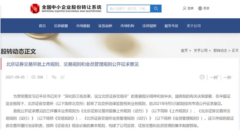 北京證券交易所三大基本業(yè)務規(guī)則開始征求意見