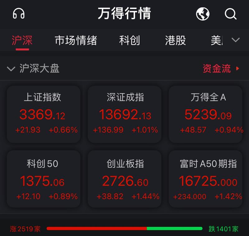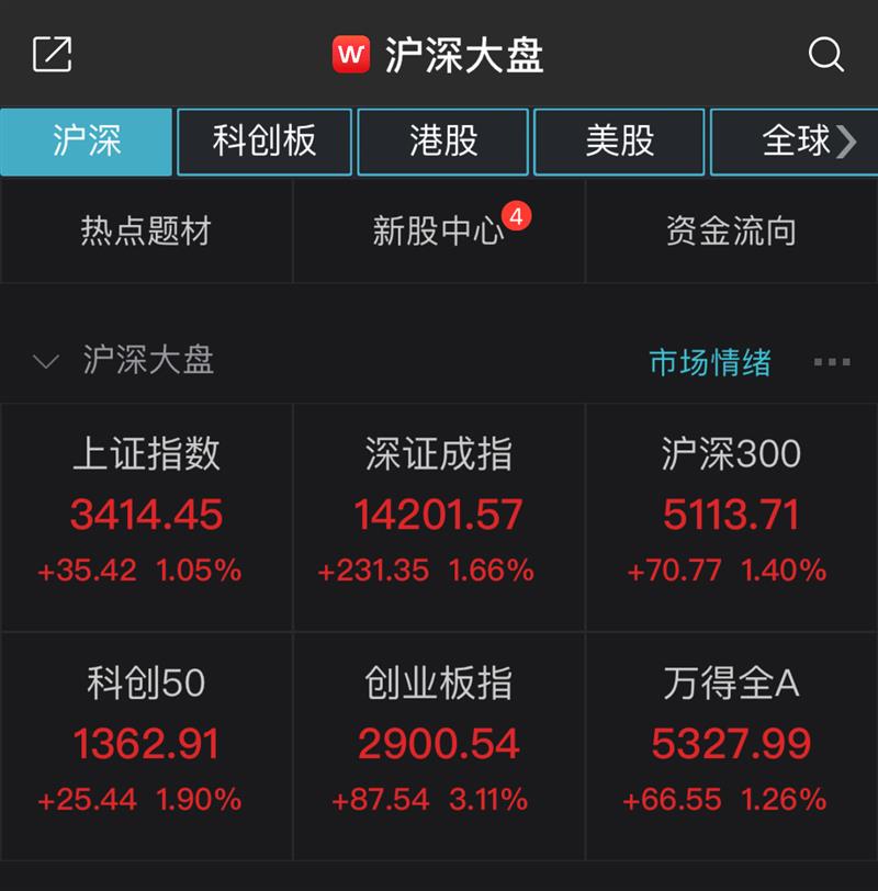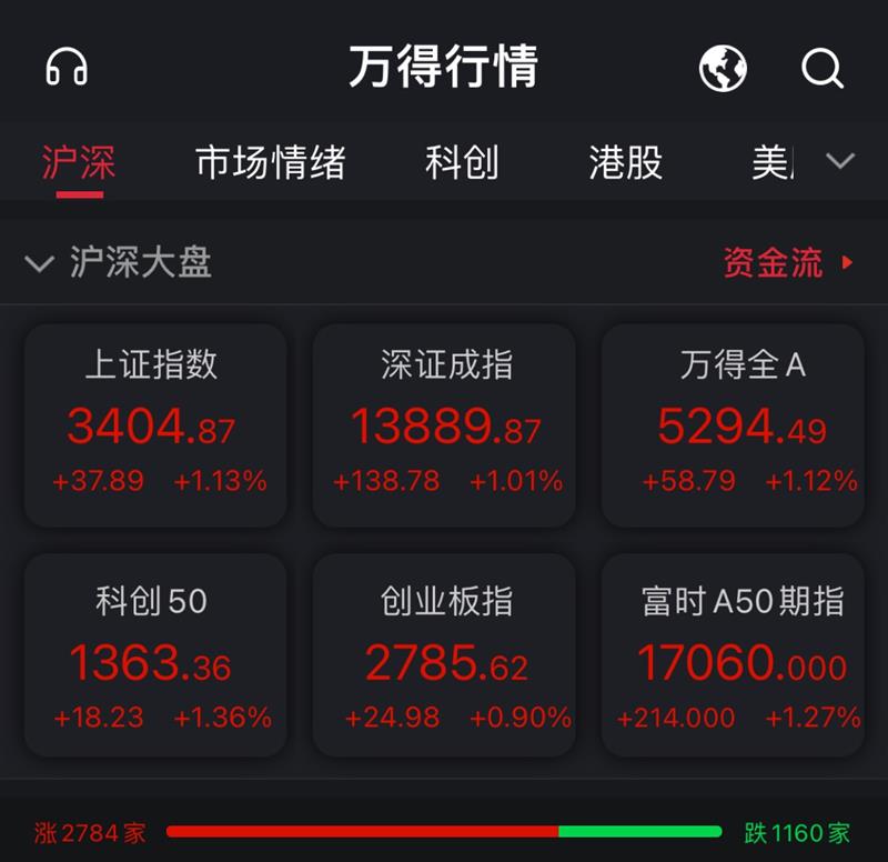 A股全線收紅:滬指重回3400點,稀有金屬等板塊領(lǐng)漲