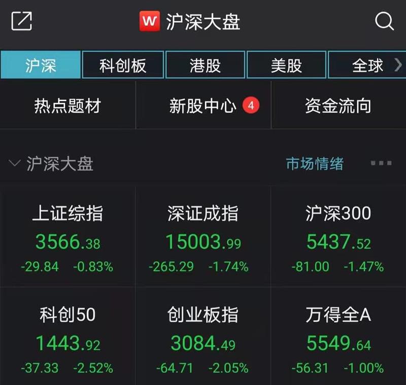創(chuàng)業(yè)板指跌超2% 兩市成交額重返萬億元
