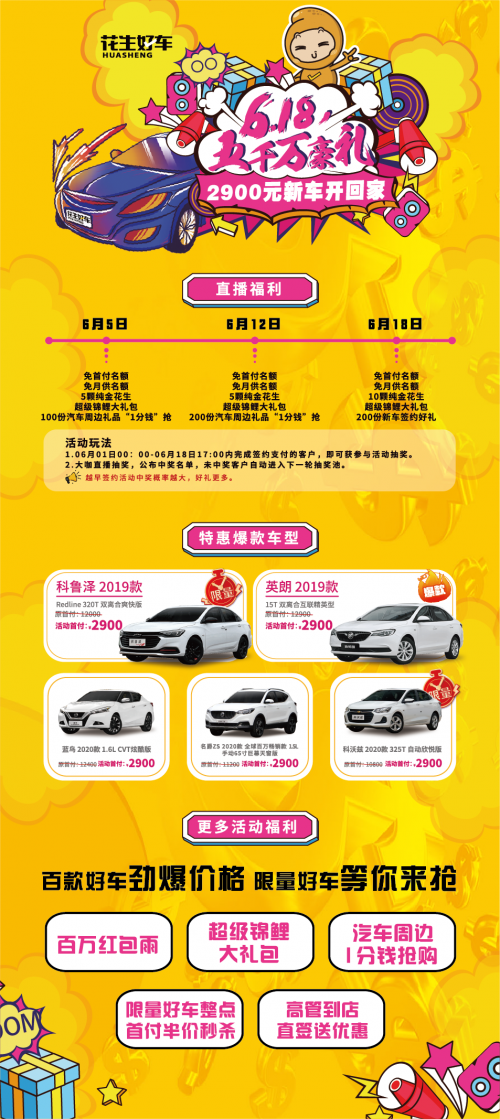 新車2900元開(kāi)回家 花生好車五千萬(wàn)豪禮開(kāi)啟618購(gòu)車嘉年華
