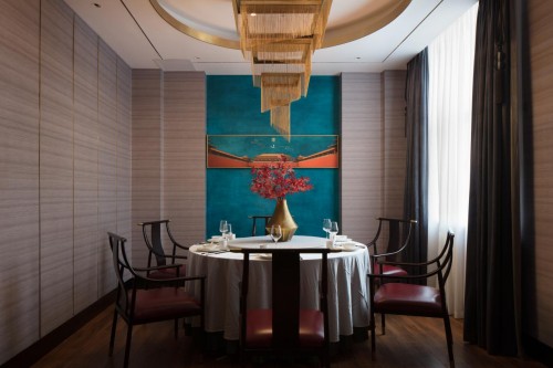 大雁塔、鐘樓和鼓樓均為西安市著名文化旅游景點。大雁塔,本為供奉唐玄奘從天竺帶回的經(jīng)文、佛像所立,因此在裝修風(fēng)格上,包廂追求簡素、清雅,理性和寧靜的空間氛圍里無不透露出遠(yuǎn)離喧囂的禪境。鐘樓與鼓樓,晨鐘暮鼓是中國古代城市生活的象征,這兩間包廂以新中式裝修風(fēng)格融入了青花紋路、水墨山水等中國傳統(tǒng)藝術(shù)元素,另一側(cè)這兩座雄偉壯觀的明代建筑分別“躍然墻上”,可供顧客一窺全貌。