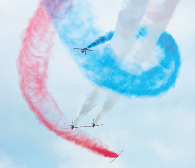 空軍航空大學“紅鷹”飛行表演隊進行飛行表演。