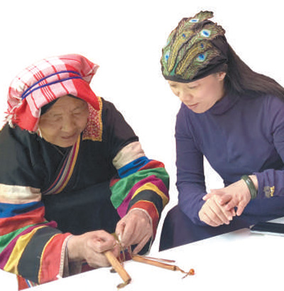 羌族口弦傳承人如妹正在講解羌族口弦制作。 |