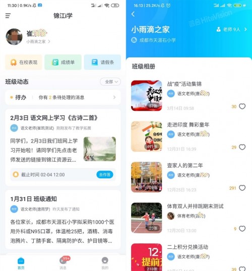 學(xué)生和家長通過錦江i學(xué)隨時(shí)查看班級(jí)動(dòng)態(tài)、班級(jí)相冊(cè)