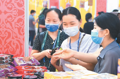 在第18屆中國—東盟博覽會上,各國參展商帶來的特色商品受到熱捧。圖為9月11日,參會者在挑選馬來西亞商品。 |