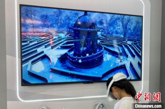 9月3日,觀眾在2023年服貿(mào)會(huì)首鋼園展區(qū)體驗(yàn)《圓明四時(shí)景》互動(dòng)項(xiàng)目。中新社記者 徐婧 攝