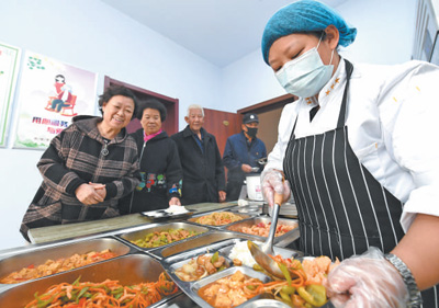??河北省張家口市懷來縣沙城鎮(zhèn)嘉馨園社區(qū)老年餐廳為老人提供就餐服務。孫慧軍攝(影像中國)