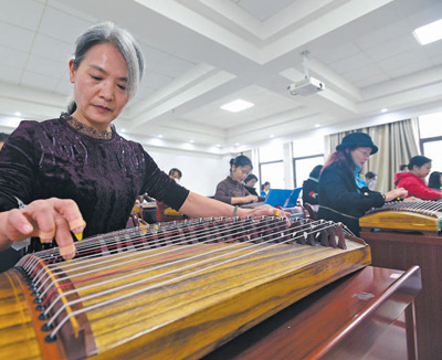 ??江西省宜春市萬載縣老年大學內(nèi),學員們正在學習古箏。鄧龍華攝(人民視覺)