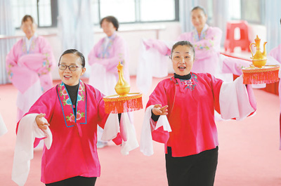 ??湖南省永州市道縣,老年大學學員們正在表演京劇《麻姑獻壽》。何紅福攝(影像中國)