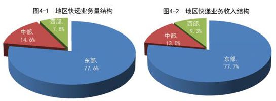 1-2月,東、中、西部地區(qū)快遞業(yè)務(wù)量比重分別為77.6%、14.6%和7.8%,業(yè)務(wù)收入比重分別為77.7%、13%和9.3%。與去年同期相比,東部地區(qū)快遞業(yè)務(wù)量比重下降2.4個(gè)百分點(diǎn),快遞業(yè)務(wù)收入比重下降2.2個(gè)百分點(diǎn);中部地區(qū)快遞業(yè)務(wù)量比重上升2.9個(gè)百分點(diǎn),快遞業(yè)務(wù)收入比重上升2.3個(gè)百分點(diǎn);西部地區(qū)快遞業(yè)務(wù)量比重下降0.5個(gè)百分點(diǎn),快遞業(yè)務(wù)收入比重下降0.1個(gè)百分點(diǎn)。