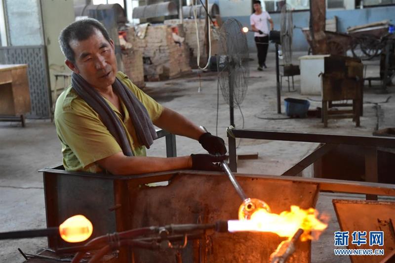 5月26日,山西宏藝玻璃器皿有限責(zé)任公司的工人在制作玻璃器皿。新華社記者 柴婷 攝