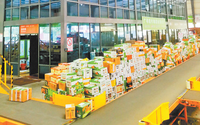 江西贛州尋烏縣供銷電商公司的快遞物流服務(wù)提高了農(nóng)產(chǎn)品流通效率。圖為該公司電商運(yùn)營(yíng)中心等待配送的商品。 |