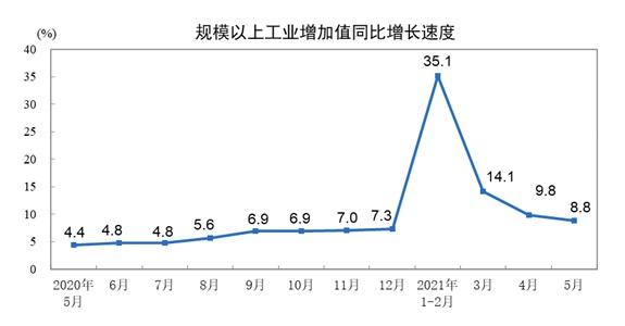 國(guó)家統(tǒng)計(jì)局:5月份規(guī)模以上工業(yè)增加值增長(zhǎng)8.8%