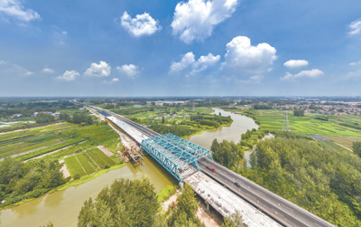 圖為京滬高速擴(kuò)建沭陽(yáng)大沙河大橋。