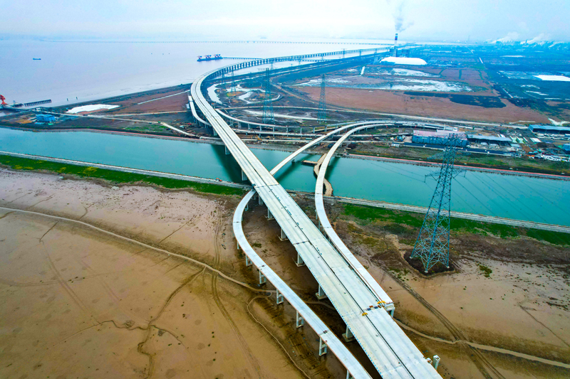 澥浦高架橋與澥浦互通成功貫通。浙交建設(shè)供圖