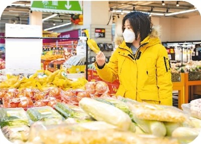 2月10日,消費者在山東省臨沂市平邑縣一家超市選購蔬菜。 |