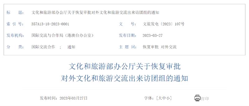 4月1日起文旅部門恢復(fù)審批對外文化和旅游交流出來訪團(tuán)組