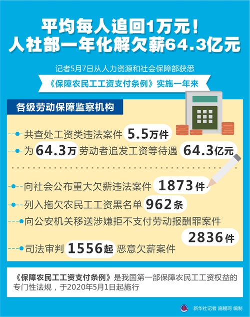 平均每人追回1萬元!人社部一年化解欠薪64.3億元