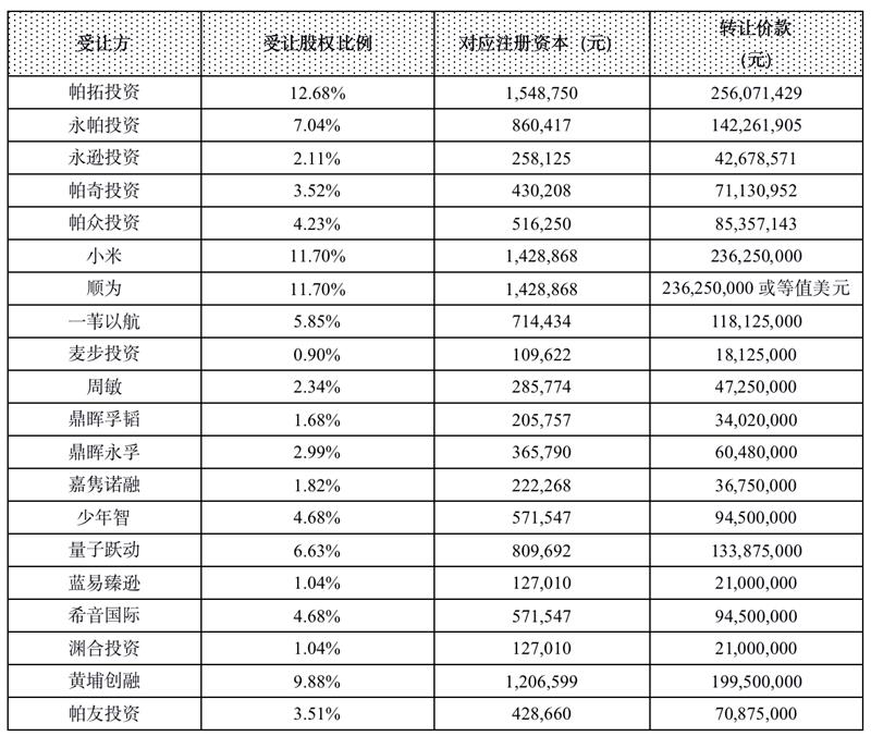 這一次,更是將旗下帕拓遜以20.20億元轉(zhuǎn)讓至小米、順為、鼎暉、量子躍動(dòng)等20家受讓方。