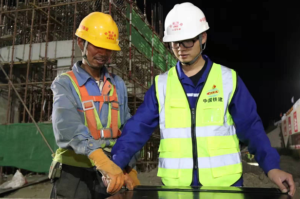 中鐵建設(shè)拉林鐵路站房項目總工程師王曉東在現(xiàn)場檢查