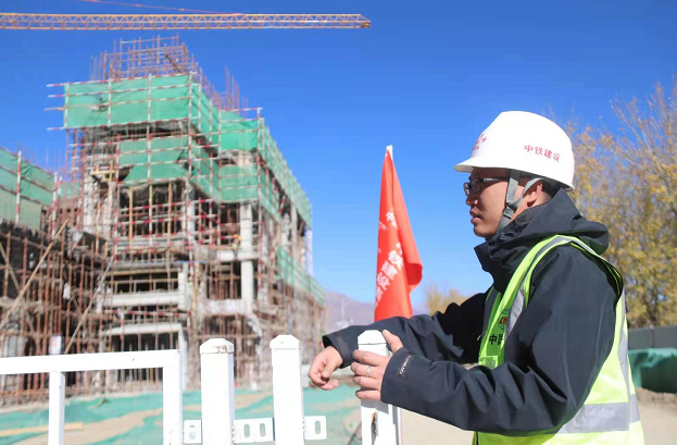 中鐵建設(shè)拉林鐵路站房項目生產(chǎn)經(jīng)理張堅在現(xiàn)場指揮施工