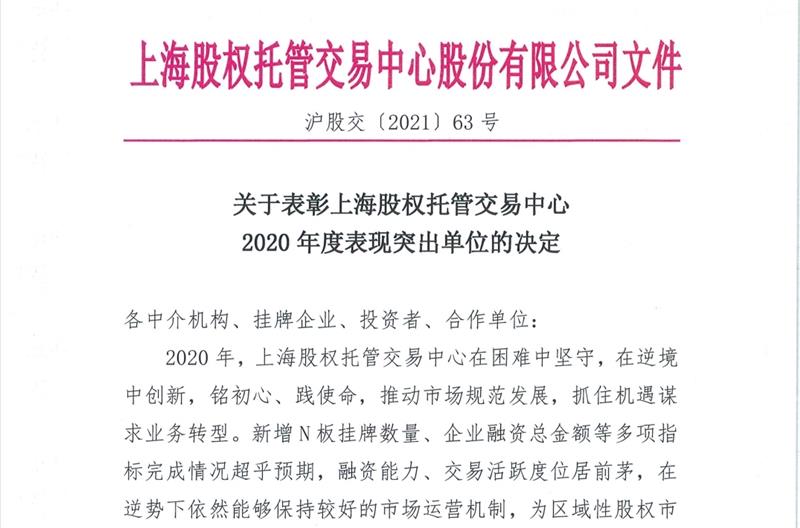 近日,上海邁童文化科技股份有限公司被上海股權(quán)托管交易中心授予“2020年度表現(xiàn)突出單位”,公司董事長黃芳被授予“2020年度優(yōu)秀投資者”獎。