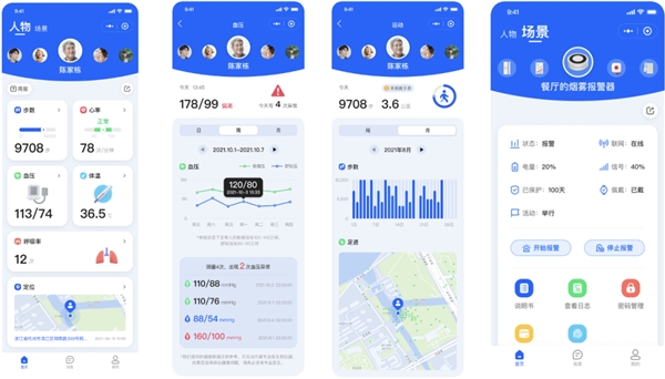 具體應用是在特定老年人家中預設走失找回、跌倒預警、突發(fā)疾病預警、日常健康情況監(jiān)測、環(huán)境危險預警等場景,通過智能手表、睡眠監(jiān)護儀、智能血壓計、跌倒監(jiān)測儀、煙霧報警器、燃氣泄漏報警器等健康安全守護設備,收集老年人家庭生活場景中的各類行為、環(huán)境數(shù)據,并通過聯(lián)合計算,分析并預警潛在隱患,及時作出安全處置。