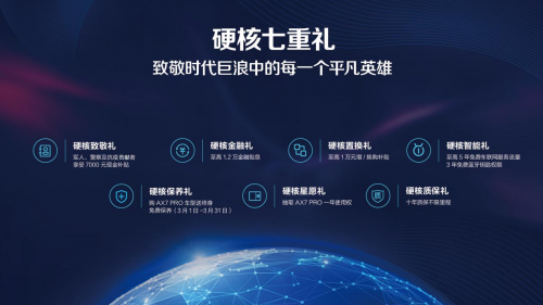 此外,東風(fēng)風(fēng)神AX7 PRO不僅至高12000元貼息的硬核金融禮回饋所有消費(fèi)者,更提供至高5年免費(fèi)車聯(lián)網(wǎng)服務(wù)流量及3年免費(fèi)藍(lán)牙鑰匙權(quán)限的硬核智能禮;而十年質(zhì)保不限里程的硬核質(zhì)保禮也能讓用戶免除用車后顧之憂。此外,在3月1日至3月31日內(nèi)購車更可享終身免費(fèi)保養(yǎng)的硬核保養(yǎng)禮;老客戶則可享受至高10000萬元的硬核置換禮,輕松切換AX7 PRO。