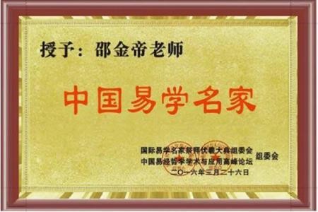 由于邵金帝成績卓著,1996年就被中國河洛易經(jīng)學(xué)院聘為副院長、易 學(xué)教授,被選為中國堪與學(xué)會(huì)常務(wù)理事,并入選《世界華人文學(xué)藝才界名人錄》和《中國當(dāng)代易學(xué)專家錄》。2010年 10月,受邀在北京政協(xié)禮堂出席國際易學(xué)大會(huì),并被授予國際風(fēng)水策劃大師。