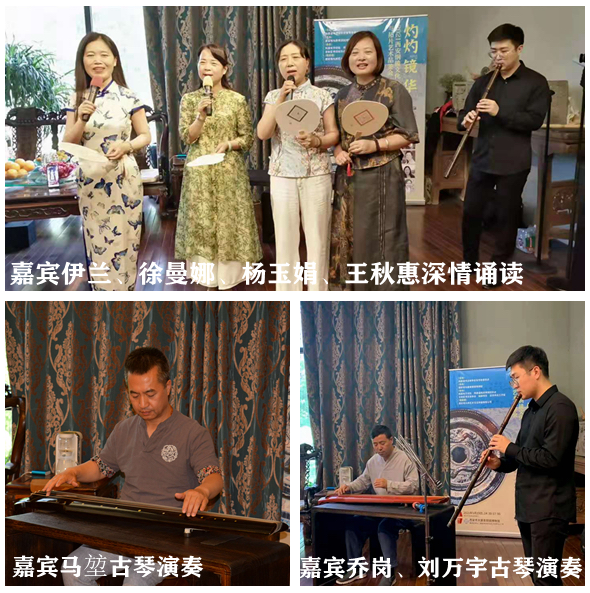 王秋惠談了銅鏡的文化內涵以及銅鏡拓片的藝術價值。專家們從不同角度,對銅鏡的收藏與鑒賞、鏡銘書法、銅鏡與中國畫的關系、與女性的關系、銅鏡的文化內涵等方面發(fā)表見解,視角獨特,論證專業(yè)性強,吸引了在座諸位研究銅鏡文化與拓片題跋藝術的興趣,將本次活動推向高潮。歷代詩人不乏寫銅鏡的詩文,白居易、杜牧等詩歌家喻戶曉,廣為流傳。著名朗誦藝術家張全聲情并茂,再現(xiàn)了李白《將進酒》的豪情。伊蘭平日拓鏡的同時常朗誦銅鏡詩詞,品鑒會上,伊蘭將博物館珍藏的草書鏡上的秦觀詞用優(yōu)美的聲音表現(xiàn)得淋漓盡致,徐曼娜、王秋惠、楊玉娟著仿古服飾,執(zhí)拓片與詩詞書法一體的團扇深情誦讀。馬堃、喬崗、劉萬宇的古琴、尺八、簫演奏使得品鑒會韻味十足。
