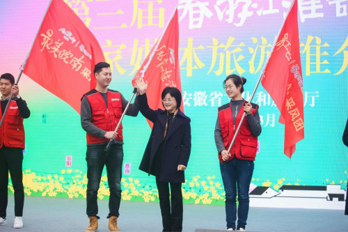 3月16日上午,由安徽省文化和旅游廳主辦的第三屆“春游江淮請(qǐng)您來”百家媒體旅游推介活動(dòng)啟動(dòng)儀式在合肥舉行。省政府副秘書長(zhǎng)左俊宣布百家媒體采風(fēng)活動(dòng)啟動(dòng);省文化和旅游廳廳長(zhǎng)袁華致辭并為百家媒體采風(fēng)團(tuán)授旗。省文化和旅游廳副廳長(zhǎng)王靖主持啟動(dòng)儀式。