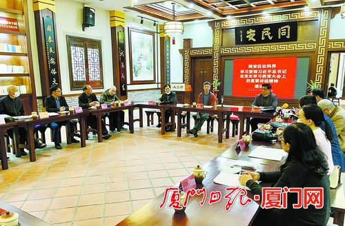 昨日,同安區(qū)社科聯(lián)召開學(xué)習(xí)貫徹習(xí)近平總書記在黨史學(xué)習(xí)教育動(dòng)員大會(huì)上的重要講話精神座談會(huì)。(陳榮臻 攝)