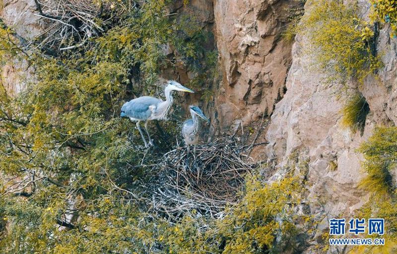 運(yùn)城市平陸縣黃河濕地好漢坡段吸引不少蒼鷺來此棲息、繁衍。新華網(wǎng) 發(fā)