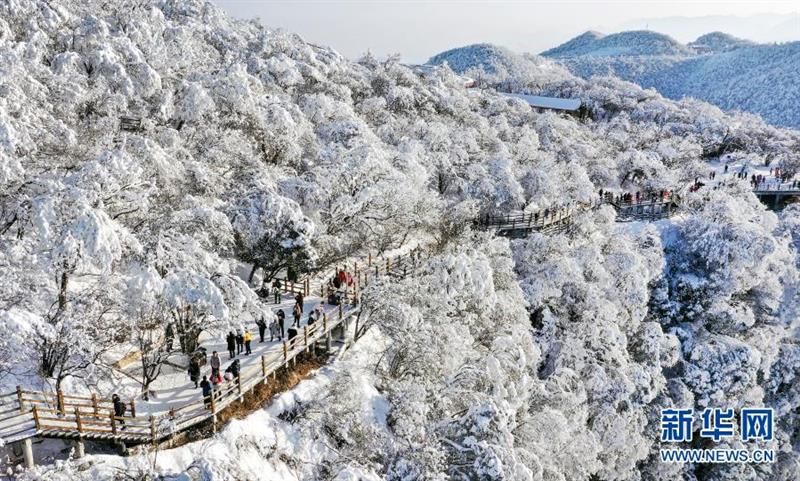 連續(xù)幾場瑞雪將川陜交界的漢中市南鄭區(qū)龍頭山景區(qū),變成漫山霧凇的童話世界。