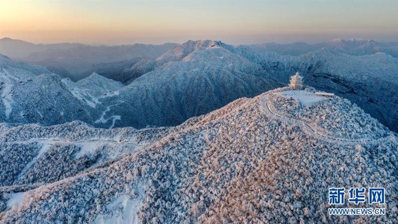 12月20日拍攝的雪后初霽的龍頭山景區(qū)(無人機(jī)照片)。