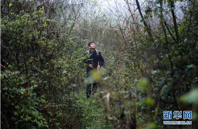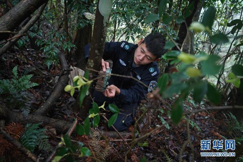 陳亮亮在密林中安裝紅外相機(jī),以便搜集野生動(dòng)物的影像資料(3月17日攝)。新華社記者 萬象 攝