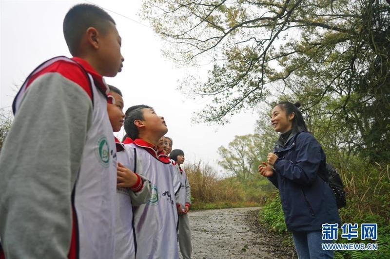 鄒鴻堰在九嶺山國家級(jí)自然保護(hù)區(qū)主要從事自然教育工作。她經(jīng)常會(huì)帶著當(dāng)?shù)睾⒆?,來到森林里開展沉浸體驗(yàn)式的自然科普課。