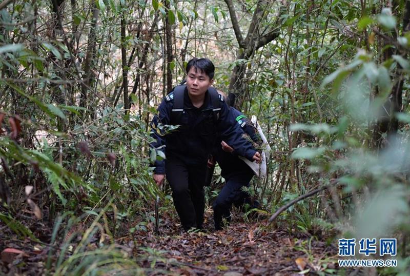 陳亮亮在保護(hù)區(qū)的密林中穿行(3月17日攝)。新華社記者 萬象 攝