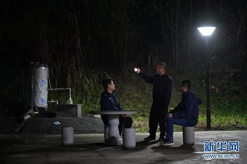 晚飯后,湯勇(左一)和同事們聚在保護(hù)管理站的院子里唱歌排解寂寞(3月17日攝)。新華社記者 彭昭之 攝