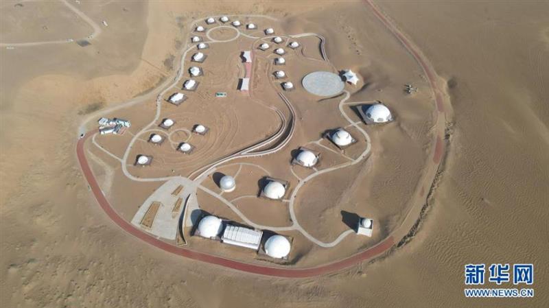 投資者看到了商機(jī),在這里搞起了沙漠生態(tài)旅游:一座座白色星球建筑零散成片分布,一座沙漠天文觀測基地矗立其中。不遠(yuǎn)處還有成片白墻灰瓦的徽式民宿,“沙漠雕塑群”吸引著全國雕塑家向往,大大小小的主題景區(qū)在這里涌現(xiàn)。