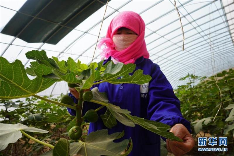 甘肅省民勤縣重興鎮(zhèn)紅旗村村民在日光溫室大棚內(nèi)管護(hù)無花果樹(2021年3月5日攝)。新華社記者 郎兵兵 攝