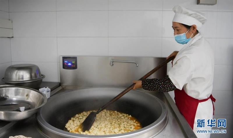 圖為鶴峰縣中營鎮(zhèn)民族中心學(xué)校的廚師正在炒菜。作為國家級貧困縣,鶴峰縣在財力有限的情況下,除了保障全縣學(xué)校教師工資、燃料、水電、食堂建設(shè)等費用外,每年投入一百多萬專項資金用于支持“免費午餐”行動。新華網(wǎng)發(fā) 楊順丕攝
