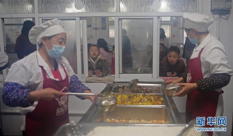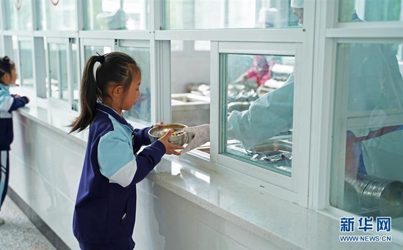 圖為鶴峰縣太平鎮(zhèn)賀龍希望小學(xué)的學(xué)生正在領(lǐng)取免費午餐。新華網(wǎng) 吳文華攝