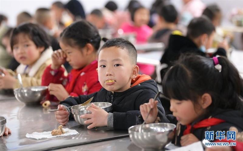 圖為2021年5月20日,鶴峰縣太平鎮(zhèn)賀龍希望小學(xué)的學(xué)生正在吃免費午餐。新華網(wǎng) 吳文華攝