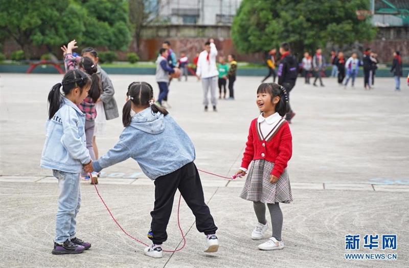 圖為午餐后,鶴峰縣太平鎮(zhèn)賀龍希望小學(xué)的學(xué)生們在操場玩耍。新華網(wǎng) 吳文華攝