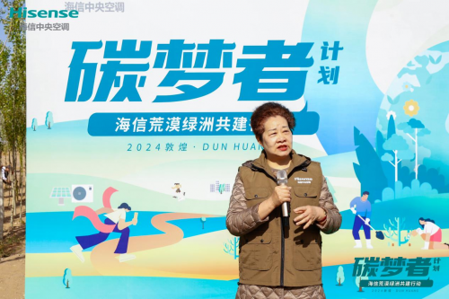 植樹現(xiàn)場,易媽媽分享了自己的公益故事。同時她表示,海信中央空調(diào)能夠連續(xù)三年來到敦煌,持續(xù)踐行綠色公益實屬難能可貴。她同時呼吁更多人傳承并發(fā)揚“億萬個人、億萬棵樹”的精神,一起助推綠色可持續(xù)發(fā)展。